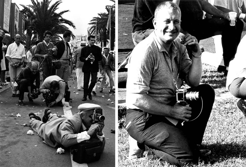 | Fotografía de prensa rosa y deportiva en los años 60 en Estados Unidos. Izquierda: Festival de Cannes en 1965. El fotógrafo en primer plano lleva una Exakta IIa (versión de 1962) o IIb. Derecha: Fotografo desconocido con Exakta y empuñadura conectada al disparador de la cámara. Podría tratarse de nuestra Varex IIa, a pesar de que la foto es de principios de los años 70. Fuente: FOTOBOOTH. | ||