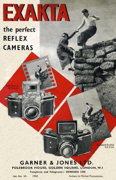 La historia de la cámara Exakta se remonta a 1912, cuando Johan Steenbergen (1886-1967), de nacionalidad holandesa funda su primera empresa en Dresden (Alemania), dedicada a la comercialización de productos fotográficos y a la venta de algunas cámaras que montaba en su propio taller. La empresa cambia de nombre y dirección varias veces hasta que finalmente se registra como Ihagee Kamerawerk GmbH. Nüchterlein observa como Ernst Leitz presenta su Leica en 1925, sorprendiendo al mundo fotográfico con una cámara en minuatura, cuya excelente construcción y gran calidad óptica permitía obtener negativos de 35mm, que superaban la calidad de muchas cámaras de gran formato. Zeiss Ikon, con su Contax I se había sumado a la línea 35mm en 1932, incorporando un obturador de laminillas. Los carretes de 35mm, tal como los conocemos hoy ya eran vendidos por Agfa. Nüchterlein había trabajado con metales y sus posibilidades de introducción en las cámaras fotográficas, cuyos cuerpos se fabricaban en madera excusivamente. Era el momento de construir una cámara metálica de 35mm. Valentin Sama (Revista FV) argumenta que en aquella época había una creciente demanada de cámaras para labores científicas y técnicas que, ni Leica ni Zeiss eran capaces de abordar. Todas estas ideas pudieron ir creando el diseño de la nueva cámara de Igahee en la mente de Nüchterlein, que fabricaría la primera cámara reflex del mundo en 1933. La cámara fue denominada Exakta y utilizaba un carrete de 6x4.5cm. No obstante, el éxito de la marca vendría en 1936, cuando fue presentada la Kine-Exakta en la feria de Leipzig (Alemania). Una cuestión que siempre nos gusta averiguar es el origen de los nombres que se ponen a estas cámaras. Y no siempre resulta fácil encontrarlo. En este caso, solo podemos hacer plantear una hipótesis a partir de conocimientos previos porque no hemos encontrado una referencia clara al origen del nombre. En griego, Kine es movimiento y de ahí deriva la palabra alemana "Kino", que antiguamente denominaba al cine y a la película de 35mm utilizada en el cine (kinofilm). Esta primera explicación fue ya descrita por Valentín Sama en FV. Podríamos conjeturar entonces que kine se refiere a que utilizaba película de cine, aunque este formato no fuera utilizado hasta la Exakta . Por otro lado, la palabra "exacta" (femenino) viene a nombrar algo que se ha construido con precisión. Si le añadimos una K para "germanizar" la palabra, obtenemos la Exakta. Así que la Kine Exakta, podría ser algo así como la cámara precisa de película de cine. La Kine Exakta mostraba dos características curiosas. El cuerpo de la cámara tenía forma de trapecio, estrechándose hacia los extremos, para un mejor agarre según el fabricante. Por otro lado, la rueda de avance de la película y el disparador están a la izquierda y no a la derecha como el resto de modelos. La primera Kine Exakta utilizaba pelicula de 35mm (24x36) y era de objetivo fijo. No obstante, en pocos años, las nuevas versiones de Exakta tendrían objetivos intercambiables e incorporarían (por primera vez) una palanca de avance para la película. La idea era competir con las Leica y la Contax. El éxito de las Exaktas fue inmediato pero el desarrollo de la empresa se vería seriamente alterado hacia 1939.