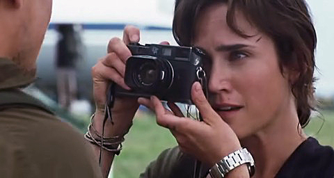 | La guapisima Jennifer Connelly interpreta a la fotógrafa Maddy Bowen, que intenta desvelar las relaciones entre los líderes de la industria del diamante y las guerrillas africanas. El propio Guillermo Piccione ya nos comentaba que Connelly utiliza una Leica M6 con un objetivo Summicrom 35mm f/2. Según he visto en alguno de los foros que abordan el tema, se trataría de la cuarta versión de este objetivo, que fue fabricada en Canadá. Obsérvese que a la Leica le han arrancado el característico logo circular rojo de la marca. | |