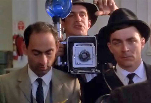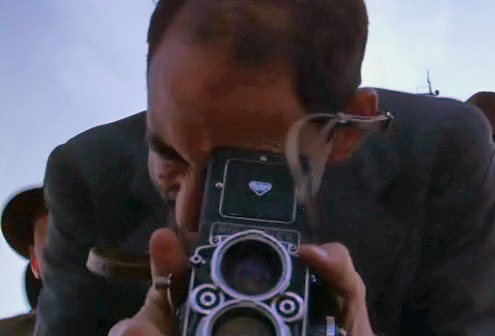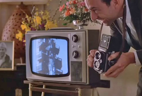 En los años 60, las Rolleiflex también eran muy conocidas y utilizadas por los fotografos de prensa. En estas escenas se muestra uno de los modelos top de la firma alemana, la Rolleiflex 2.8F (1960-1981) que monta un obletivo Carl Zeiss Planar 80mm f/2.8 y alcanza una velocidad de obturación de hasta 1/500s. Esta cámara es de formato 6x6 y utiliza carretes de 120 (12 exposiciones). |