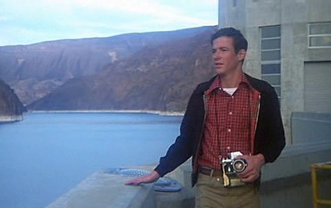 | En el tramo final de Superman, Jimmy Olsen se dispone a fotografiar una presa, minutos antes de que ésta reviente. En esta ocasión nos muestra una Nikon F Photomic FTN con motor F-36 y paquete portapilas de la primera versión. El objetivo que lleva la cámara es un Nikkor-S Auto 50mm f/1.4. |