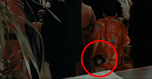 Linda Hunt recorre las calles de Yacarta con una Nikon F Photomic T. Sin embargo, no toma una sola fotografía durante la película. La imagen superior derecha nos sirvió para identicar este modelo. Curiosamente esta cámara salió al mercado en 1965, que es la fecha en la que se supone, sucede la trama de esta película. Hay algunas otras cámaras que aparecen durante el filme, pero siempre en planos amplios que impiden identificar los modelos. No obstante, en la imagen derecha podemos ver una Praktina, el modelo profesional de la Praktica. En la sección dedicada a la película Juegos de Guerra aparece otra cámara de este tipo y se comentan sus características principales. |