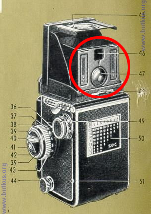 Según Suzuki, hubo efectivamente una Olympus Flex tipo I, fabricada en Agosto de 1952. Esta cámara llevaba objetivos Zuiko 75mm f/2.8 y velocidades de obturación de 1s-1/400s más el modo B y una clavija tipo Kodak para flash de bombilla de alta velocidad (F). Es muy rara de encontrar y llevaba además un número de serie compuesto por siete dígitos, en lugar de los seis habituales. La cámara dispone del sistema de espejo que utilizaba Rolllei para permitir mirar desde atrás a través del visor, como si de una reflex se tratara (Figura 1). Los alemanes pusieron la demanda correspondiente por la utilización del sistema del espejo del visor y Olympus tuvo que detener la producción de este modelo. En Febrero de 1953 saldría al mercado el conocido después como modelo B I, porque en aquel momento era simplemente una Olympus Flex. Este segundo modelo carecía de este sistema de espejo y lleva un número de serie compuesto por los seis dígitos habituales. Por lo demás, muestra las mismas prestaciones que el modelo anterior. En octubre de 1953 salió al mercado el que después sería denominado modelo B II. La principal diferencia con la anterior es la sustitución del sistema de conexión con flash externo, que ahora pasa a ser un sistema de conexión mediante cable sincro PC para flashes electrónicos (X). A partir de Noviembre de 1954 se comercializó el primer modelo A, cuyas características completas puede ver en tlr-cameras. Olympus tenía dos proyectos más de cámaras TLR: las Olympus Eye-44 A3.5 y B2.8, en formato 4x4. En 1959, ambos proyectos estaban listos. Sin embargo, la demanda de cámaras fotográficas se inclinaba vertiginosamente hacia los formatos reflex y compactas de 35mm, de forma que las Olympus Eye no llegaron a ver la luz. |