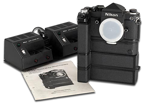Este sistema impone la precaución de no quitar el motor cuando hay una película puesta en la cámara, ya que la luz podría entrar por el hueco de acceso al carrete y velar algunas de las exposiciones. El motor MD-1 fue actualizado en menos de 2 años por el MD-2, e incluso aparcería un MD-3. En 1978 se presentó en Photokina la Nikon F2 High Speed. Esta cámara, basada en el modelo F2 de titanio, se vendía solo con el prisma estándar (sin fotómetro) aunque podía ser utilizada con cualquiera de los otros visores. No obstante, en caso de utilizar otro visor, deberá hacerse una compensación de la exposición de entorno al 35% de sobreexposición respecto a la luz que capta el visor. Otro detalle a tener en cuenta de esta cámara, es que carece de diafragma automático. Esto significa que cuando se cierra el diafragma se oscurece la imagen, pero este detalle era necesario para alcanzar velocidades de disparo de hasta 10 fotogramas por segundo. El espejo es semitransparente y por ello también carece de bloqueo de espejo. El disparador automático también fue eliminado. El motor de arrastre incluye una segunda caja para baterías. |