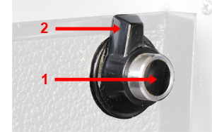 Sobre la palanca del diaparador retardado de la cámara se localiza el botón de previsualización de la profundidad de campo (1) y bloqueo del espejo (2). La previsualización de la profundidad de campo permite observar que elementos del encuadre van a quedar enfocados y cuales no. Si desconoce esta técnica visite la sección dedicada a técnicas básicas, donde se detalla la utilidad de esta herramienta.