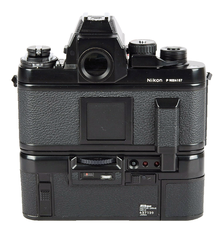 | Parte trasera de una Nikon F3P con respaldo MF-6B que trae de fábrica. Este respaldo aparece sustituido por la puerta estandar en muchas de las F3P que se venden en internet. Suponemos que algunos fotgáfos utilizaban la cámara sin motor y ese perno de la puerta trasera era un engorro a la hora de dejar la cámara sobre una mesa... | ||
