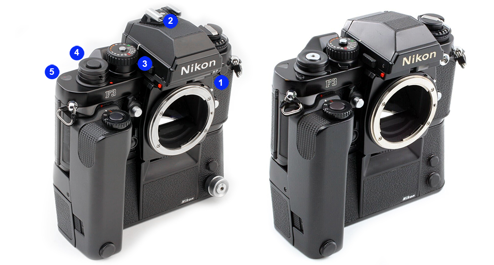 La Nikon F3P presenta algunas otras diferencias, respecto al modelo estándar. Esta versión lleva una pantalla de enfoque tipo B, pero además: