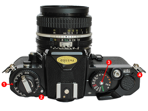 | Figura 1. Secciones superior y posterior de la Nikon FE | |||