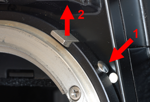 La Figura 1 muestra los elementos más singulares que muestra esta cámara. La Nikon FE incorpora una pestaña de seguridad (1) que impide la apertura de la puerta trasera por accidente. La posición normal de esta pestaña es la que se muestra en la imagen (1a). En esta posición observará que no se puede levantar la palanca de rebobinado de la película. Para abrir la puerta trasera y cambiar el carrete, se tiene que deslizar la pestaña hacia atrás, y sin soltar tirar hacia arriba de la palanca de rebobinado. El anillo de sensibilidad de la película (12-4000 ASA) se localiza bajo la palanca de rebobinado. Como no caben todas las sensibilidades, las rayas pintadas entre cada número simbolizan el valor de sensibilidad intermedia entre cada uno de los valores numéricos. Para seleccionar una sensibilidad ASA, deberá pulsar el botón (2). Sobre este botón podrá observar los valores de compensación de la exposición (-2, +2). Si desea compensar la toma, tire hacia arriba del anillo ASA para seleccionar un valor de compensación. Sobre el dial de velocidades y modos se inserta otro botón cromado (3) que es necesario pulsar para pasar del modo Auto a las velocidades de obturación. La palanca (4) se utiliza para tomar exposiciones múltiples. Desplace esta palanca hacia atrás y sin soltarla comience a girar la palanca de avance de la película. Cuando la palanca de avance está cerca del dedo que sujeta la de exposiciones múltiples, suelte esta última y complete la carga del obturador. Podrá realizar tantas exposiciones como veces repita esta operación. La parte trasera de la cámara muestra un LED (5) que permite comprobar la carga de las baterías. Junto a este LED hay una pequeña palanca. Desplace esta palanca hacia abajo. Si las baterías (2x1.55v) tienen carga suficiente se encenderá el LED rojo. El obturador electrónico y el fotómetro necesitan de las baterías para su funcionamiento, sin embargo, existe la posibilidad de disparar sin pilas a 1/90s. Esta velocidad mecánica está marcada como M90. La velocidad de sincronización con flash 1/125 está marcada en color rojo. Cuando el flash está cargado y preparado para disparar, podrá observar como se enciende el LED rojo (6), situado justo encima del ocular. |
