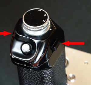 MD-1 y MD-2 son básicamente el mismo modelo con idénticas funciones. No obstante hay algunas diferencias externas. En la placa trasera se puede leer el modelo del motor, que obviamente es la mejor forma de identificarlos. En esta misma placa, y bajo la etiqueta del modelo, el MD-2 lleva un LED que se activa cuando el carrete está completamente rebobinado. Este LED no estaba presente en el MD-1. Pero además, el MD-1 lleva un disparador alargado y rectangular, tipo interruptor; mientras que el MD-2 monta un botón circular más pequeño. El botón disparador de la empuñadura de estos motores es intercambiable. Los últimos motores MD-1 que salieron al mercado incorporaban el botón circular que luego llevaría el MD-2. Ambos modelos son capaces de rebobinar la película hasta introducirla completamente en el carrete. Junto al MD-2 se puso a la venta una puerta trasera (MF-3 Rewind Stop Back) capaz de detener el rebobinado casi al principio del carrete, dejando la lengüeta de la película fuera. No se recomienda utilizar este accesorio en el MD-1. Instalación y funciones del motor MD-2 Antes de colocar el motor bajo la cámara, debe retirar la palanca de apertura de la puerta trasera (Figura 1), desatornillándola con una moneda. De esta forma el motor accede al eje del carrete para poder rebobinarlo. La palanca de apertura se puede atornillar a la parte trasera de la empuñadura del motor. Una vez hecho esto, ya puede instalar el motor bajo el cuerpo de la cámara. Tenga en cuenta que al haber quitado la palanca de apertura de la puerta trasera de la cámara, entra luz por ese hueco. Por lo tanto, no instale o extraiga el motor cuando la cámara tiene un carrete puesto porque se velarán las fotos que en ese momento estén fuera del carrete. Recuerde que el disparador de la cámara y la palanca de avance de la película se pueden utilizar, aunque el motor esté instalado. |