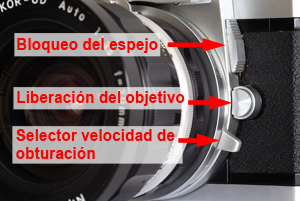 La cámara incluye elementos muy útiles para el usuario. Acepta todos los objetivos Nikkor con acoplador de diafragma (orejas de conejo). Los nuevos también pueden ser acoplados, pero se pierde el contacto con el fotómetro y se mide la luz respecto al diafragma más abierto del objetivo. Carece, eso si, de la posibilidad de acoplamiento de motor y de pantallas de enfoque intercambiables. La pantalla de enfoque estándar presenta el microprisma de 4mm de diámetro rodeado por un círculo de 12mm de superficie mate.