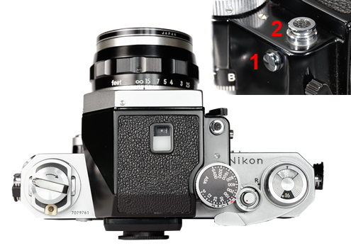 | Figura 1. Vista superior y posterior del visor Photomic FTN montado sobre una Nikon F