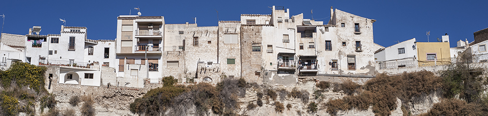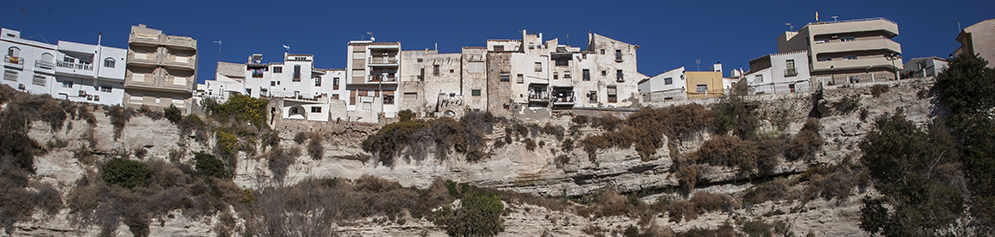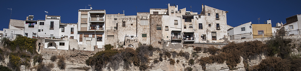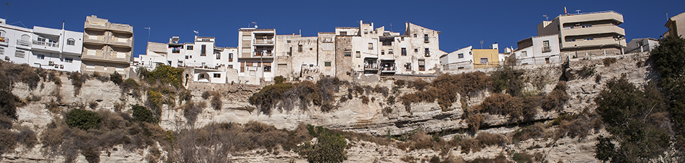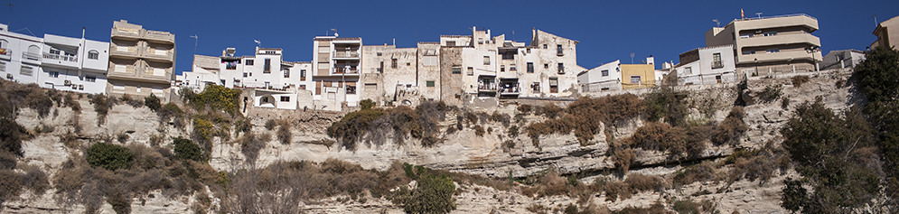 | Los gráficos hacen saltar la "quality alarm" sobre la calidad del objetivo. Este objetivo puede ser un buen todo-terreno si no vamos a ampliar mucho las imágenes. Esta toma de Sorbas (Almería) fue realizada con una Nikon D700, nuestro zoom Nikkor 28-50mm f/3.5 y dos objetivos para comparar las focales extremas: un Nikkor 28mm f/2.8 AI y un Nikkor 50mm f/1.8 AIS. Utilizamos un trípode Manfrotto 055 para mantener el encuadre y comenzamos a tomar fotografías alternando entre los tres objetivos con la misma cámara, mismo ISO 200, etc. A simple vista las diferencias entre los objetivos son muy pequeñas con la focal 28mm, a menos que disponga de una "vista de lince". Si ampliamos estas imágenes, entonces podemos corroborar sin duda lo que nos dicen los análisis mtf. Hay que considerar además que la focal 28mm del zoom es la que peor calidad ofrece. | |||